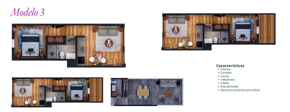 En la planta baja, los residentes disfrutan de comodidades. En el último nivel, algunas unidades cuentan con acceso a rooftop, ideal para disfrutar momentos unicos y exclusivos al aire libre.